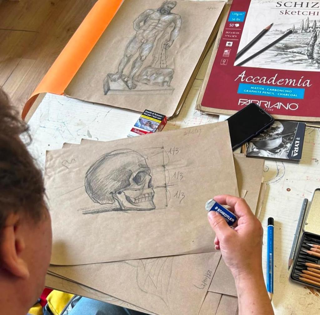Il corso di disegno presso Atelier TuttoNero è strutturato in modo personalizzato: sebbene le lezioni si svolgano in gruppo, ogni allievo lavorerà a stretto contatto con l’insegnante per creare un percorso adatto alle sue esigenze e ai suoi obiettivi.